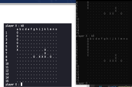 [그림 8] 5-in-a-row detection을 수행하는 모습.