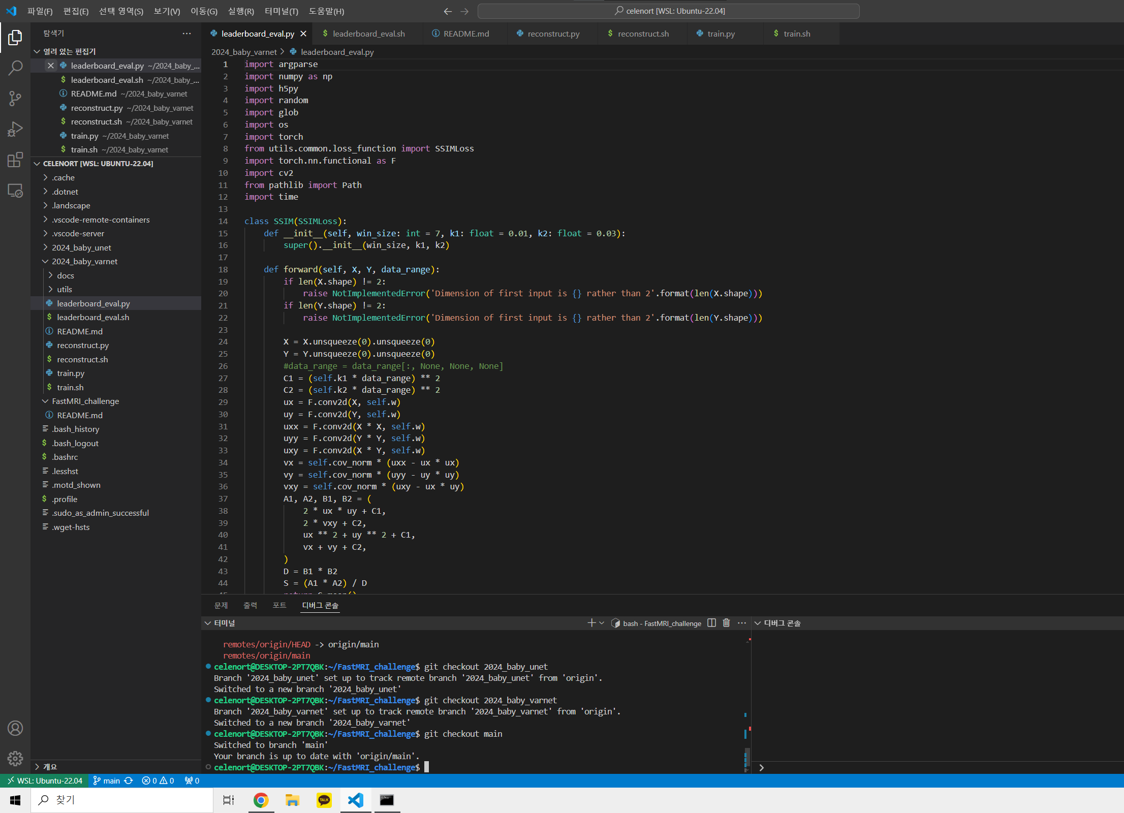 - 나는 브랜치 옮겨다니면서 하기 귀찮아서 걍 물리적으로 2개다 복사해서 붙여넣었다. 왼쪽에 2024_baby_varnet , 2024_baby_unet 폴더 확인.