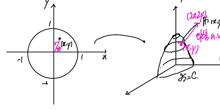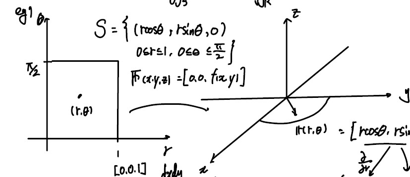 (eg) S : z = 1 − (x_2 + _y_2), (_x_2 + _y_2 ≤ 1), F = [_y, z, x]