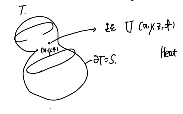- 위 식의 integral : S를 통해 빠져나가는 heat의 순간 변화율 ×Δt
