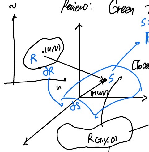 이라 하면, v, u를 매개로 하는 곡면 S에 대해 테두리 ∂S