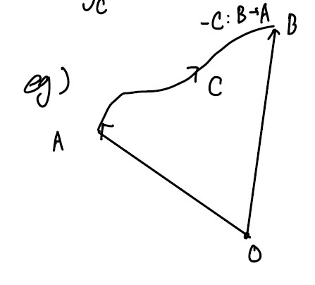 \[C : A \rightarrow B \\ -C : B \rightarrow A\]r(t) (a ≤ t ≤ b) ↔︎ r(a + b − t) (a ≤ t ≤ b)
