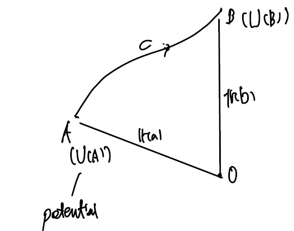 (eg) 돌이 B -> A로 떨어질 때 작용한 힘을 $F $ 라고 하면,