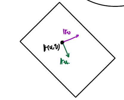 실제 곡면에서는 r(u, v), r(u + Δu, v), r(u, v + Δv), r(u + Δu, v + Δv) 의 4개의 꼭짓점을 가진 사각형 형태의 곡면에 대응됨.