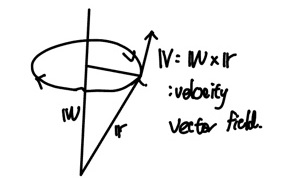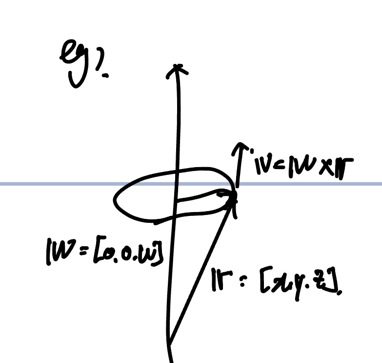 (eg) ω = (0, 0, ω) 로 회전하는 경우를 고려해보자.