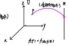 - 공간상의 점 $P \in \R^3$가 $\R$ 로 대응됨.