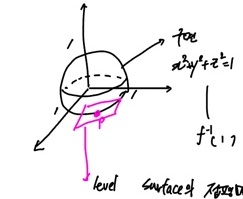 반지름이 1인 구면 ($x^2+y^2+z^2=1, f^{-1}(1) $ : level surface (f의 1-등위면)