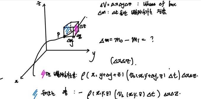 - $y $, P점에서의 x-z 방향의 순간질량변화율이므로, 이를 확장하면,