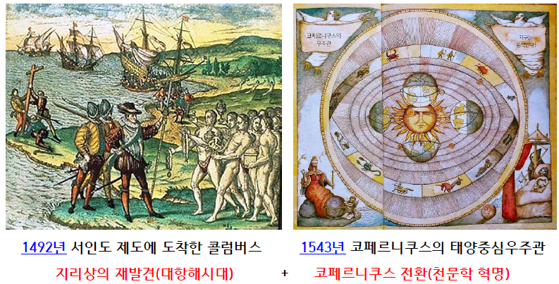 - 1543년 코페르니쿠스 전환(코페르니쿠스의 태양중심 우주관 : 천문학 혁명)