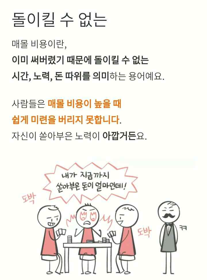 매몰비용 효과는 ‘손실 회피 본능’과 깊이 연관된다. (본전 생각이 발목 잡는다.)