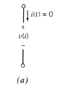 Open circuit : Special case of ideal current source ($v(t)$can be any value)