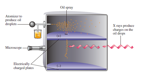 - 밀리컨의 기름방울 실험 : 기름방울을 분사하여 전기장이 있는 판 속에 넣음