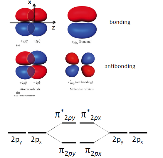 $2p_x − 2p_x \text{ or } 2p_y − 2p_y$의 결합 : π bonding,