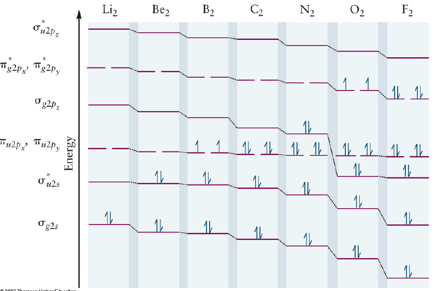- Bond order가 높아짐 → 당연히 길이는 짧아지고 에너지는 높아짐.