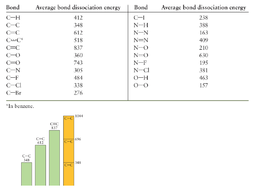 - 공유결합의 Bonding 에너지는 원자의 종류에 크게 의존하므로 종류에 따른 평균 에너지를 Table화 할 수 있음.
