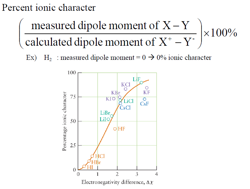 - Pure covalent bonding이라고 가정을 하였을 때 실제 에너지가 이론적 에너지보다 크게 측정 → ionic한 경향 존재