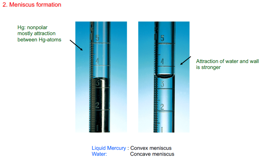 - 물과 물의 결합보다 물과 벽의 결합을 더 선호 → Concave