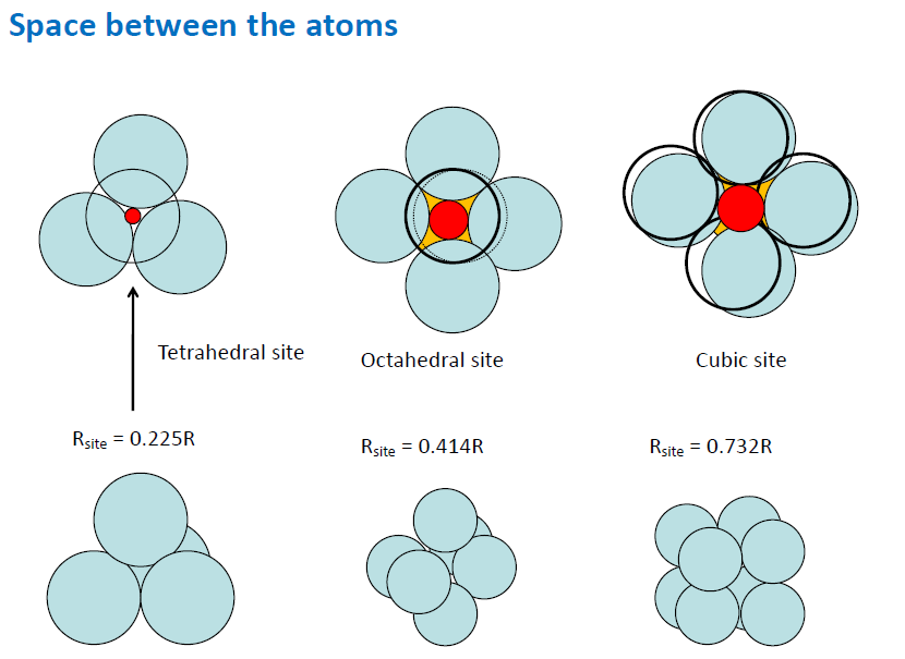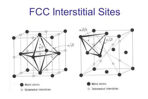 FCC에서의 Octahedral intersite : 13개, (4+5+4) / Tetrahedral intersite : 8개