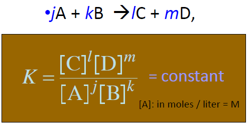 - 평형상수 = 평형에서의 농도의 계수 제곱의 비 (몰농도 단위) 온도에 대한 Term이므로 온도도 기입.