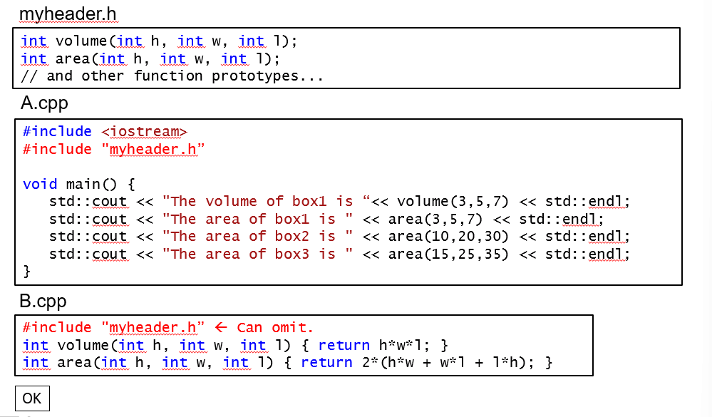 - Can also be placed in a seperate file (another .cpp or for declaration, .h or .hpp)