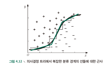 - Feature axis에 data point를 plot 하였을 때 Decision tree가 하는 일은 axis에 parallel한 경계선을 긋는 행위.